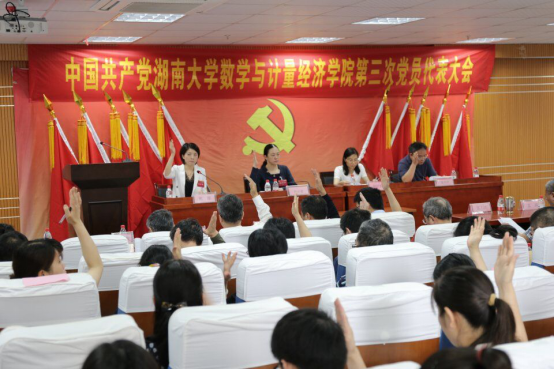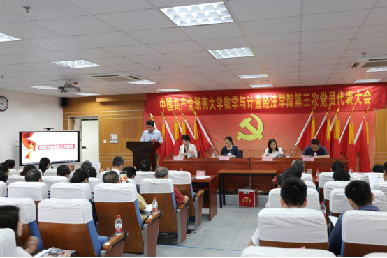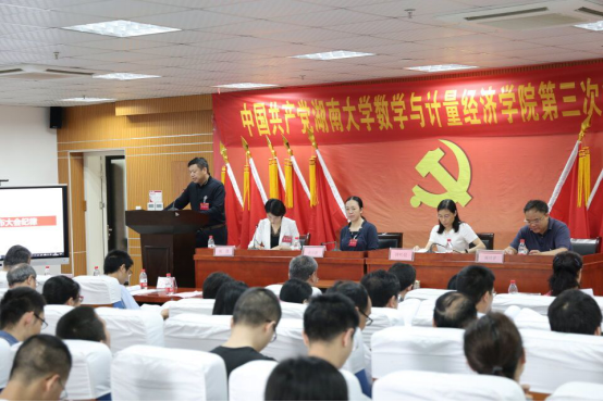 数学与计量经济学院第三次代表大会在数学院207报告厅隆重召开。大会主题是:高举中国特色社会主义伟大旗帜,以习近平新时代中国特色社会主义思想为指导,深入贯彻党的十九大和学校第九次党代会精神,带领学院共产党员和全体师生员工,不忘育人初心,牢记时代使命,充分把握“双一流”建设的大好机遇,团结协作,攻坚克难,为建设国内一流的数学学科而努力奋斗。大会由数学与计量经济学院党委副书记熊雅同志主持,中共色情导航