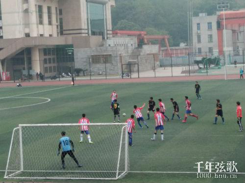随着主裁判哨响,比赛正式开始。球权在数学院与生物院之间不断转换着,双方打法都很稳健,在来回不断周旋中慢慢寻找破门的机会。开场3分钟,数学院10号许辰希在对方禁区门前尝试射门,球线稍有偏离,3号前锋许金水迅速赶来补上射门,但对方门将紧紧将球扑住。开场20分钟,生物院获得角球机会。守卫在门前的数学院球员机智解围,将球踢出禁区外。又是3号许金水,从左边线接到球后一马平川向前疾奔,而生物院此时后防无人!数学院观众激动的等待这一例进球。许金水带球一路冲到生物院禁区前,一脚抽射,但未入门。此后3号许金水和10号许辰希有多次单刀机会,但被化险为夷。上半场结束时,比分停滞在0:0,未有进球。