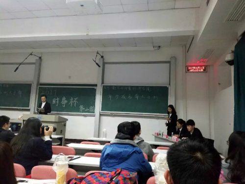 口舌之争,尽显真章。2017年3月11日晚六时,时事杯八强赛,数学与计量经济学院(反方)与金融与统计学院(正方)以“年少成名利大于弊还是弊大于利”为辩题,在中楼107展开了一场激烈精彩的辩论赛。最后,数学院获胜,正方二辩获得“最佳辩手”称号。