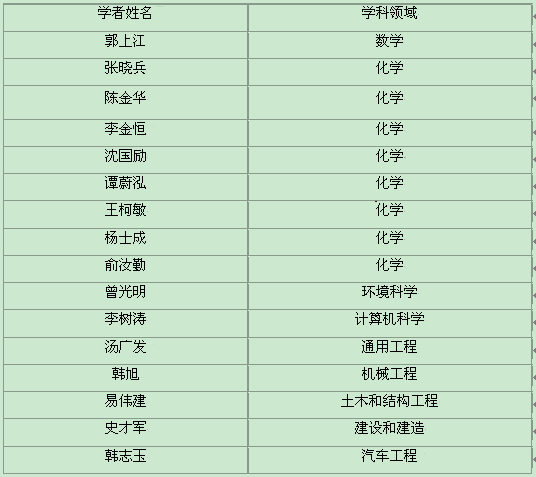 爱思唯尔2017年中国高被引学者分别来自227个高校或科研机构,其中共有200所高校拥有高被引学者。本次国内共有 1793 位学者入选该榜单,中国科学院、清华大学、北京大学位居全国前三位。我校共有16人入选,分布于数学、化学、环境科学、计算机科学、通用工程、机械工程、土木和结构工程、建设和建造、汽车工程等领域。